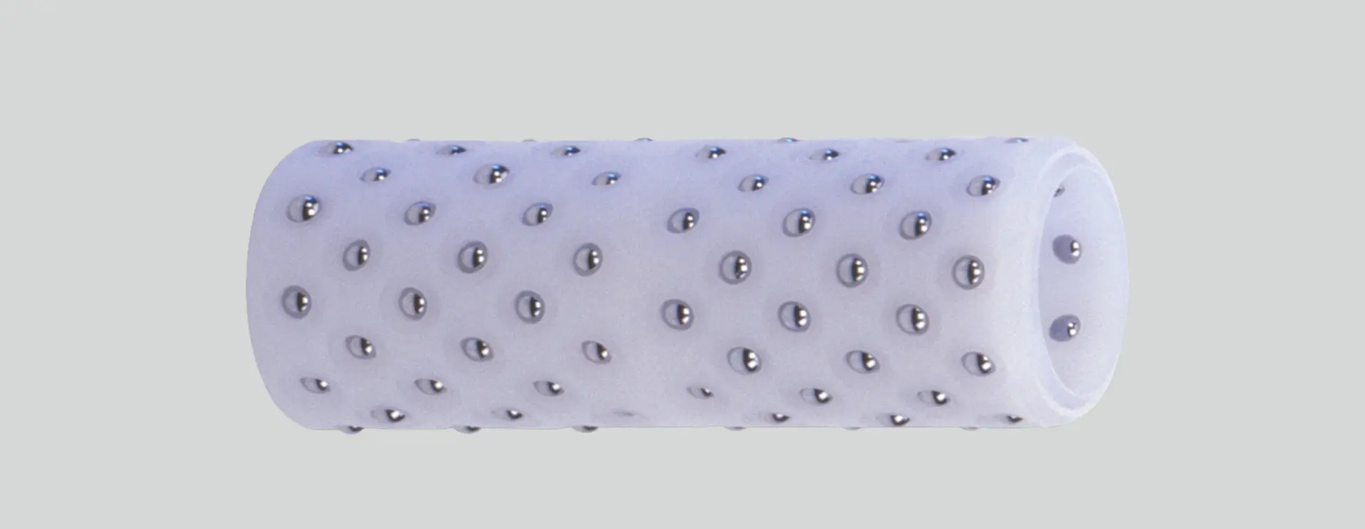 Cage à billes en résine de polyacétal (POM) avec billes en acier.